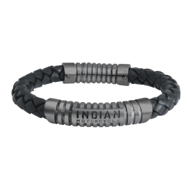 Robuste et affirmé, le ENGINE LINES BRACELET IN GUNMETAL associe un design en acier inoxydable avec une finition PVD durable à un bracelet en cuir tressé qui apporte texture et caractère. Son motif central gravé reflète l’esprit Indian Motorcycle, entre puissance et authenticité. Doté d’un fermoir à poussoir pratique et sécurisé, ce bracelet offre un équilibre parfait entre style et solidité.
